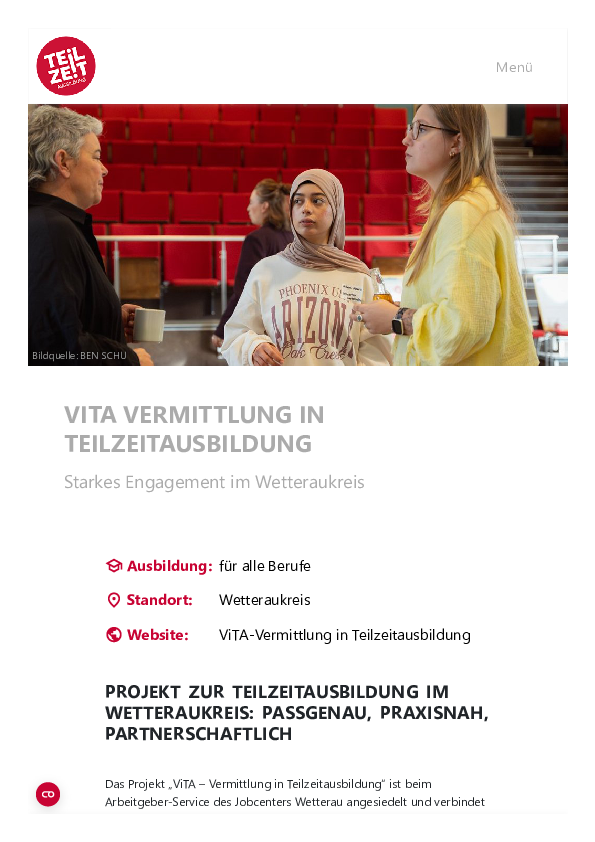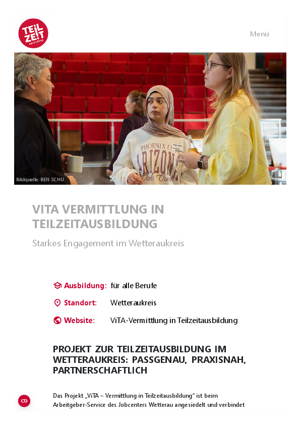 Die besondere Stärke des Projekts liegt im Vermittlungsfokus: ViTA versteht sich als Bindeglied zwischen Betrieb, Bewerber und Netzwerk. In enger Kooperation mit der Agentur für Arbeit, der Servicestelle Teilzeit-Ausbildung, Schulen, Kammern und regionalen Bildungsträgern entsteht so ein stabiles Netzwerk, das flexible Ausbildungslösungen im Wetteraukreis ermöglicht.